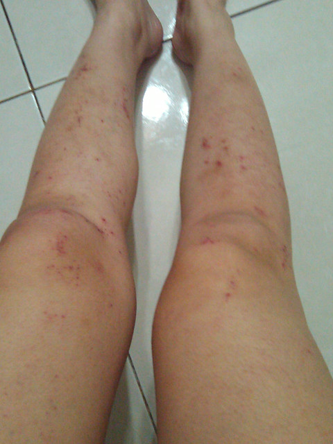 ※100.12.15一開始抓到紅疹↓,線再以變成黑色素沉澱之疤疤囉!!